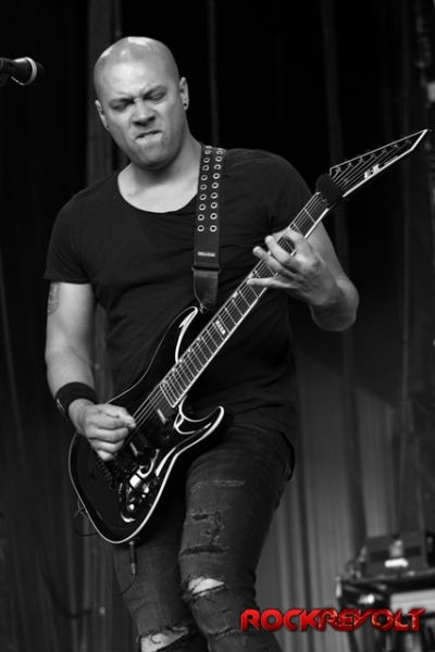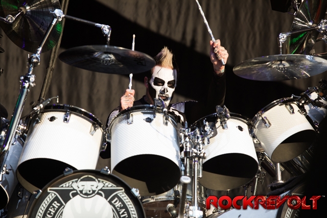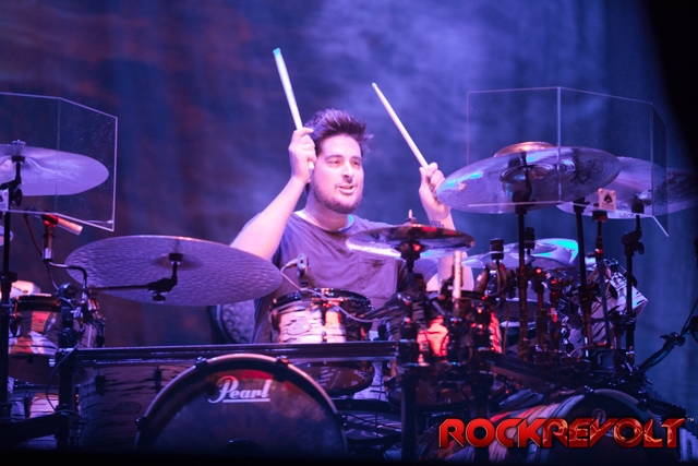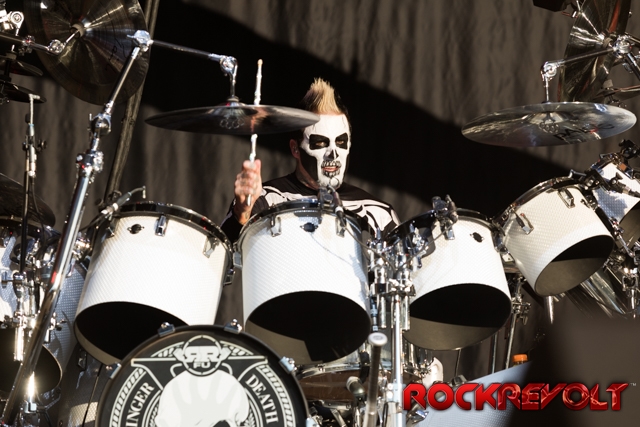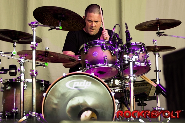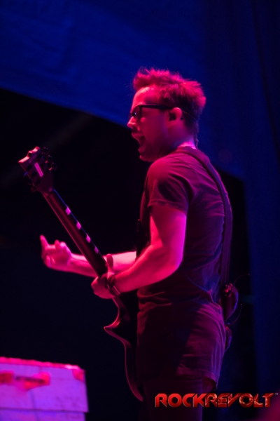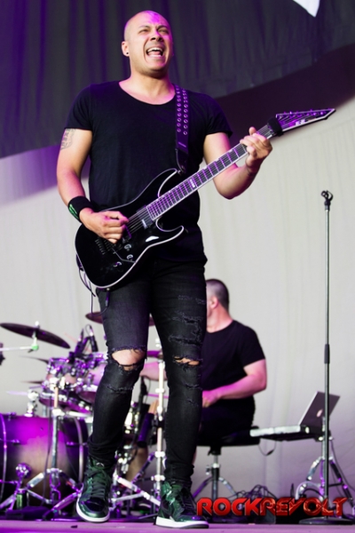 The last band to take the stage on this co-headlining adventure was Breaking Benjamin. In stark contrast to the bright sunshine and pyrotechnics, Breaking Benjamin opted for a darker, simple stage. With the sun now securely nestled below the horizon, they opened with “Red Cold River” from their most recent release Ember. They brought down the house on the second song with “I Will Not Bow”. Five songs into the set, a strange drum/lightsaber love-child was brought front and center. With Benjamin Burnley pounding the drums up front, the band performed a medley of the Star Wars Imperial march, Tool’s “Schism”, Nirvana’s “Smells Like Teen Spirit”, Pantera’s “Walk”, and Metallica’s “Sad But True”. Because nothing says “heavy” like Sad But True.