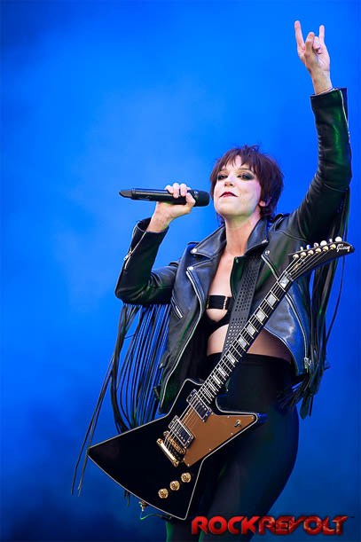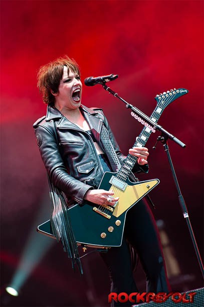 Halestorm are no strangers to Download festival. Enter Lzzy Hale who delivers an absolutely amazing vocal performance. In her new leather clad Joan Jett look, she and her brother Arejay open up and let loose on the crowd in a combined vocal and percussive assault on the senses. Lzzy thanks the crowd and says she is proud to be a woman and she gets all the women present to roar. The set opens with “Untouchable” and this is followed swiftly with a request from Lzzy to little brother Arejay to let loose. Arejay duly obliges with a percussive attack that is both technically amazing and entertaining to watch.. Staples like “Ms Hyde” and “Freak Like Me” are rolled out and as usual Arejay gets the opportunity to trash his drum kit during the obligatory drum solo. Today’s set is wrapped up with “Love Bites (so do I)” and “I Miss the Misery”. “Love Bites (so do I)” sees Lzzy joined onstage for a duet by Asami from the band Lovebites who also played a set at Download.
