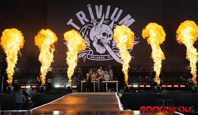 Trivium who have racked up eight studio albums since their formation in Florida in 1999, have attracted a huge crowd to the Main stage. The weather has improved, and this only adds to the excitement of the fans and the band. The set today includes “Like Light to the Flies,” a blistering rendition of “Strife” and “In Waves.” The show is augmented by liberal use of Pyrotechnics and smoke, which add to the atmosphere. After the last tour was received so well, it is great to see Trivium at Download. The band has grown, and they admit they have their sights set now on a festival headline slot. Following this tour they plan to start writing material for a new album, so there is much to look forward to!