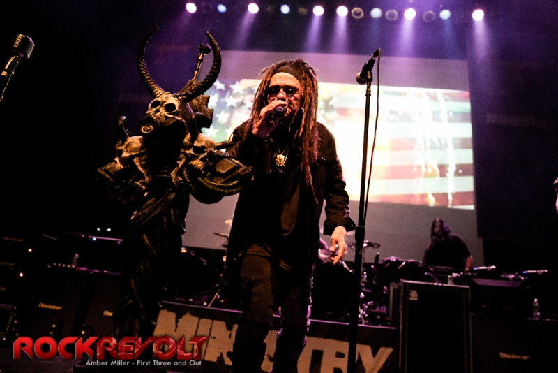 Closing out the night on this rare two band set list were the industrial metal giants better known as Ministry. If you looked up evolution in the dictionary there should be a picture of Al Jourgensen right there. When you talk about Ministry you talk about eras in time. They have never been the band that has stuck to one style as they have seemed to enjoy reinventing themselves and put out that feel that is right to them and that is never a bad thing. Ministry is out in support of their upcoming album release “AmeriKKKant” that will release sometime in March of 2018. Nothing like a little pre-tour to get the juices flowing for new music. On both sides of the stage were what appeared to be large inflatable ducks adorned with a Donald Trump hair piece with a crossed out swastika on their chest. As Ministry played their politically charged set, a projector projected equally politically charged images for the crowd to see and they were both audio and visually pummeled by the massive sounds of Ministry. It was a show that completely embodied the climate of this country and showed that uniting as a people is how we will and can overcome all obstacles that are in our way.