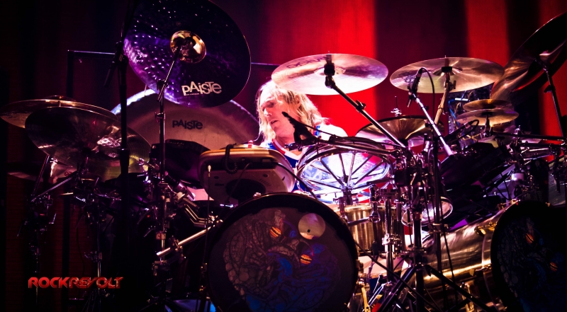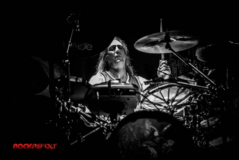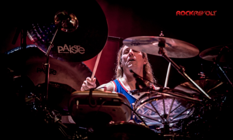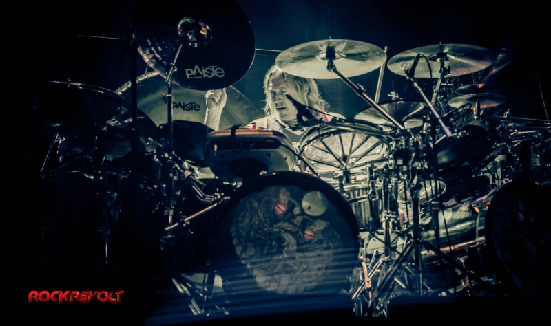 Following a ten-minute intermission Carey would emerge from the shadows to deliver a lengthy drum solo. The percussion interlude pitched and swayed in tempo as galactic inspired visuals meshed with the drummer’s familiar geometric and Enochian symbols in the background before the solo seamlessly transitioned into the band’s performance of “Vicarious.”