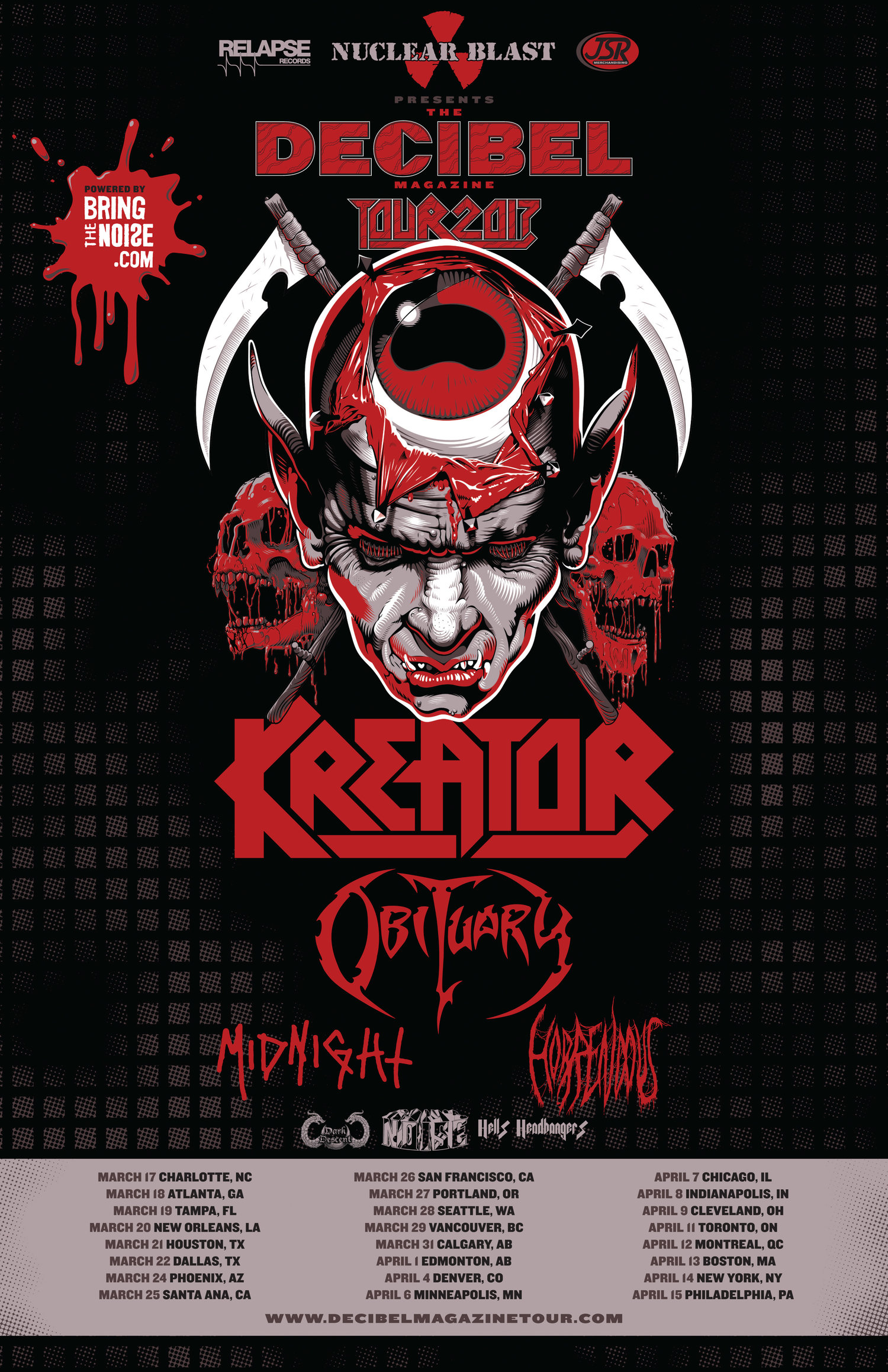 Catch Kreator on the 2017 Decibel Magazine Tour with alongside Obituary, Midnight, and Horrendous.
