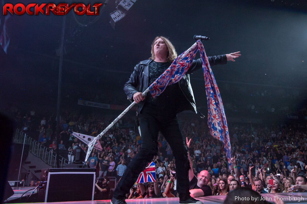 The time had come for the boys from Sheffield England to take the stage and deliver decades of hits to the fans that were waiting in the wings. For a band that has been around for as long as Def Leppard has, it does not sound like they have lost a step at all. It was like putting in a cassette tape and listening to a digitally remastered copy, they were incredible. Tons of lights and effects coming from their gigantic screen played right into every song and added to the nostalgia of the night. Hits like “Animal”, “Foolin” and “Love Bites”, a plethora of songs that Def Leppard has made famous throughout the years rained down on the Sprint Center patrons for them to dance the night away. “Pour Some Sugar on Me” was what everyone thought might be the end of the night, but wait there was more. Def Leppard came out and treated the crowd to a two song encore of “Rock of Ages” and “Photograph”. This was definitely a show for the ages and one that brought smiles to the faces of many a people that got to go back out and relive their youth.