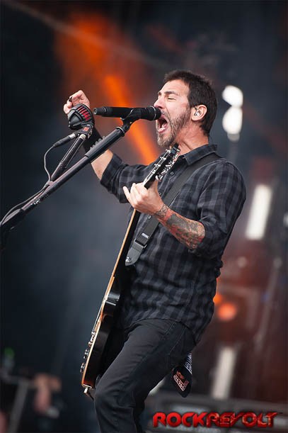 Trivium who have racked up eight studio albums since their formation in Florida in 1999, have attracted a huge crowd to the Main stage. The weather has improved, and this only adds to the excitement of the fans and the band. The set today includes “Like Light to the Flies,” a blistering rendition of “Strife” and “In Waves.” The show is augmented by liberal use of Pyrotechnics and smoke, which add to the atmosphere. After the last tour was received so well, it is great to see Trivium at Download. The band has grown, and they admit they have their sights set now on a festival headline slot. Following this tour they plan to start writing material for a new album, so there is much to look forward to!