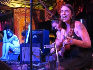 Sara: I have a slightly different idea of life as an artist than many others do. I chose it without any illusions of getting rich or even being able to afford to go to the dentist in my 20’s and 30’s. To me, art is worth my teeth, it’s worth my health and my life, and that is reflected in my nearly psychotic commitment to performing 100 days a year, or 200 days a year, usually in warehouses, art galleries, coffee shops, or people’s living rooms and basements. I intentionally book tours not at bars because I hate the way they profit off of bands. I hate that the youth is excluded. I hate the lack of appreciation for music and art in those environments, and I hate the way the audience responds. To me, there is no upside to playing in a bar, except that they might at some point pay you. The hassle isn’t worth it. I would rather play to ten people in their living room and collect donations to stay on tour. The downside of that is that you are playing for underground and punk kids, and they have no money, therefore it’s harder to stay on the road. Anytime I start to feel troubled by the fiscal tightrope my life has become as a result of choosing to live as an artist, I just have to accept that this is who I am, and I can make it work, or not. I choose “make it work” everyday. That said, I approach it all with a good attitude, because if I let bitterness or ego seep in, it would destroy me and the integrity of what I want to communicate.