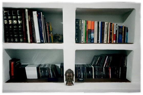 I live in a library, so to say. This room that I live in used to be the library at my house. It’s packed with books. I took out the books that belong to my parents because I needed the space to put other books in, and I slowly moved into this place. Now I have my studio, my bedroom, my wardrobe, everything. Basically I just need a freezer and a kitchen, and it’s a house.