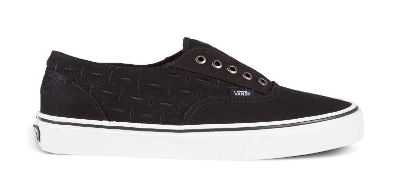Lars Ulrich - Putting a twist on one of Vans’ original Classics, Lars updated the Era Laceless with brushed twill materials and a print taken from the diamond plate pattern on his snare drum. He finished his shoe with a Dirty Donny character on the inside heel.