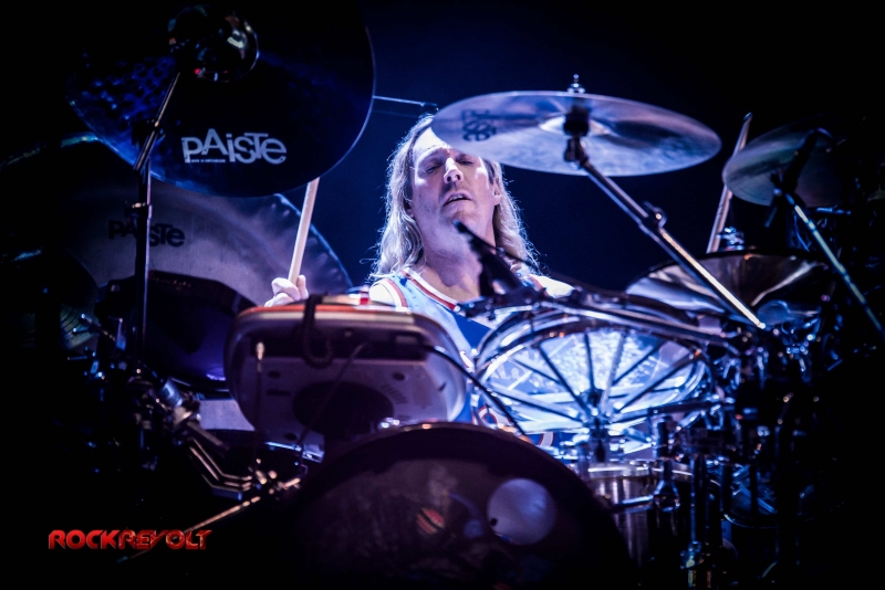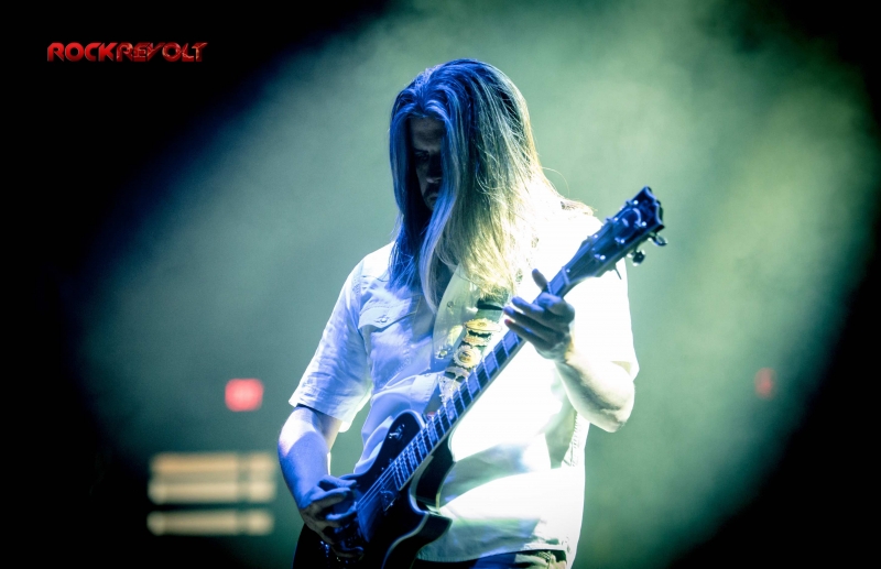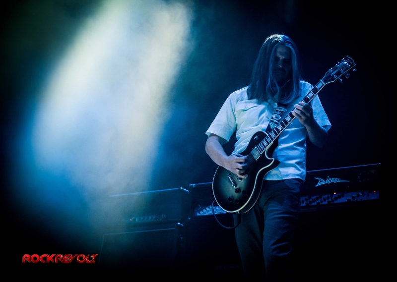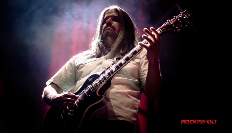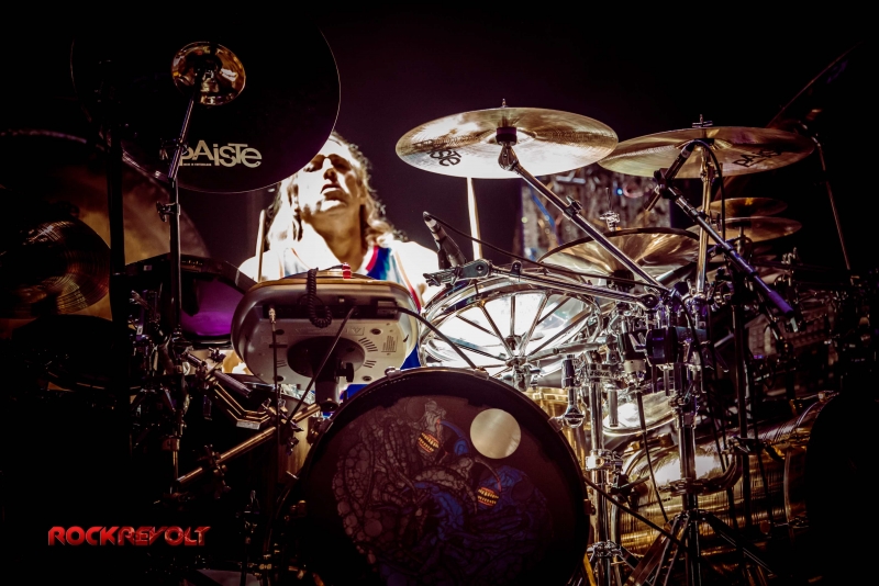 Following a ten-minute intermission Carey would emerge from the shadows to deliver a lengthy drum solo. The percussion interlude pitched and swayed in tempo as galactic inspired visuals meshed with the drummer’s familiar geometric and Enochian symbols in the background before the solo seamlessly transitioned into the band’s performance of “Vicarious.”